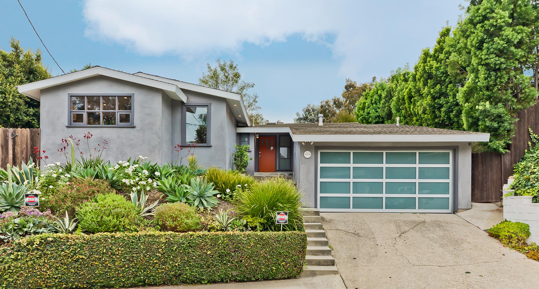 Nestled within the natural beauty and tranquil enclave of a quiet cul-de-sac, this 3 bedroom/3 bath home in Cheviot Hills is a masterful example of minimalist, mid-century architecture with an added dash of fanciful flair. Honey hued bamboo floors, clean lines and an open floor plan provide a warm, natural flow. The living room and family room has wide, open shelving for books and art, and offers an iconic, double sided, stone fireplace that anchors the space. New sliding glass doors follow the length of the home, basking the entire space in natural light and allowing the interior to extend outside. The exquisite, state-of-the-art, recently remodeled dream kitchen was just featured in HGTV magazine. A glorious expression of color and popping with personality, the kitchen features all new appliances including a Bertazzoni oven and range, Miele dishwasher, designer tiles and finishes, in-island microwave and Jenn-air stainless refrigerator set against the backdrop of jewel box colors. The kitchen overlooks the ultra-private backyard which offers a drought resistant lawn, wood planked patio under romantic Bistro lights, mature hedges, citrus trees, an astounding view of Downtown Los Angeles and is large enough for a pool. Each of the three bedrooms is ample in size and the Master Bedroom has two closets, one of which is an oversized walk-in with custom built-ins and storage space. The attached master bathroom, a stunning vision in beautiful, blue designer tile, offers dual sinks in the vanity and Jacuzzi bath. Additional features of this home include: sunny breakfast nook, two-car garage with new door, new tankless water heater, new cold/hot filtration system, new sprinkler system and wired for security alarm/cameras. This is a truly unique and chic home, brimming with style without sacrificing function. Come visit it today.